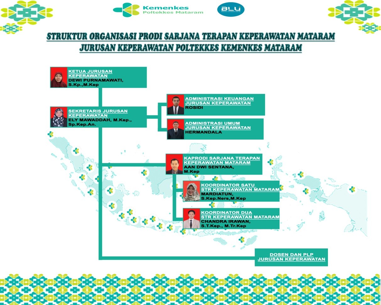 Guna memperlancar kegiatan di Program Studi Sarjana Terapan Keperawatan Mataram Mataram, Ketua jurusan membuat surat penunjukan untuk memudahkan koordinasi dengan jurusan dalam mengelola program studi yang terdiri dari :