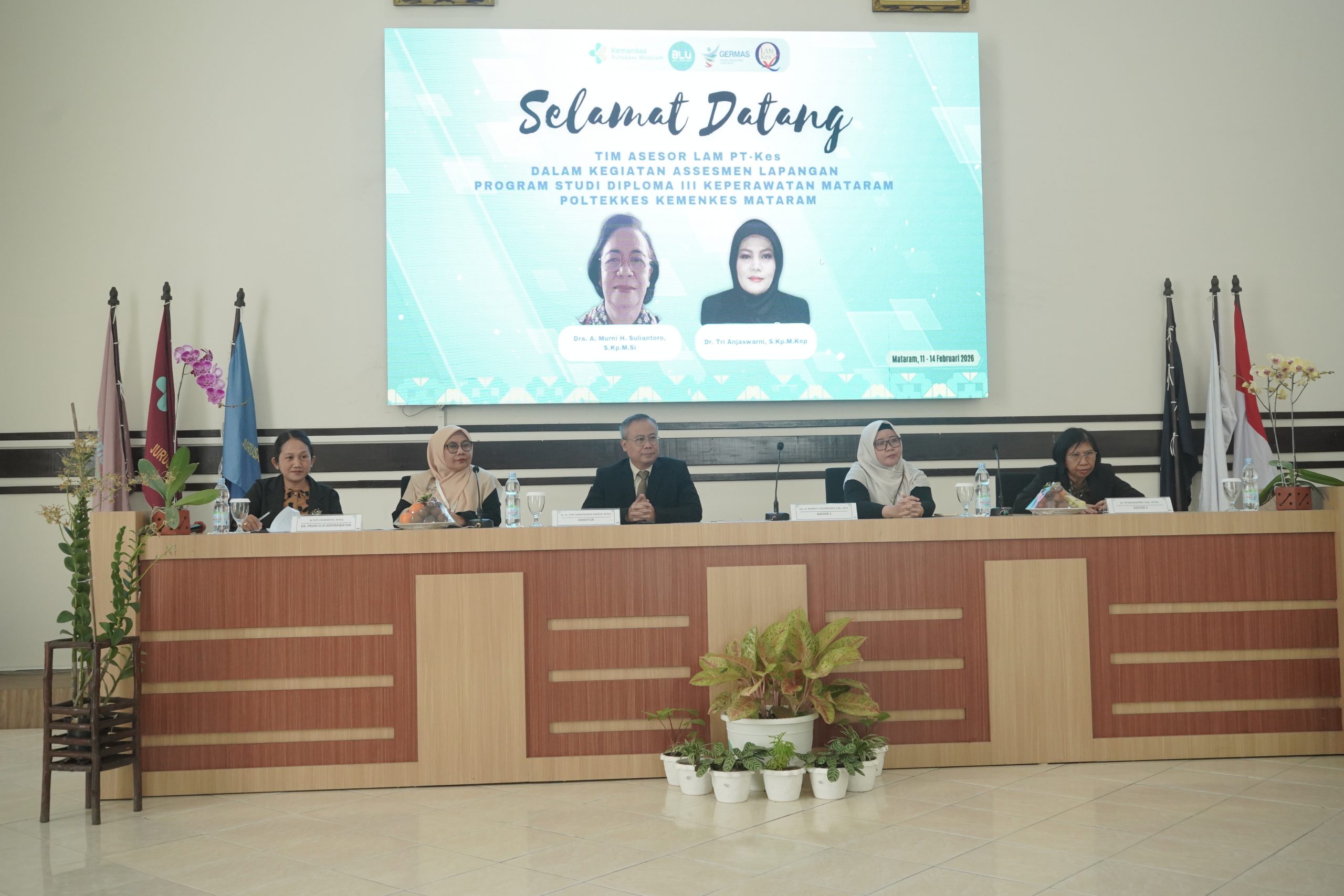 Mataram – Program Studi D-III Keperawatan Mataram Poltekkes Kemenkes Mataram melaksanakan kegiatan Asesmen Lapangan Akreditasi pada tanggal 11 s.d. 14 Februari 2026. Kegiatan ini dilaksanakan oleh tim asesor dari LAM-PTKes yang terdiri atas Dra. A. Murni H. Suliantoro, S.Kp., M.Si selaku Asesor I dan Dr. Tri Anjaswarni, S.Kp., M.Kep selaku Asesor II.