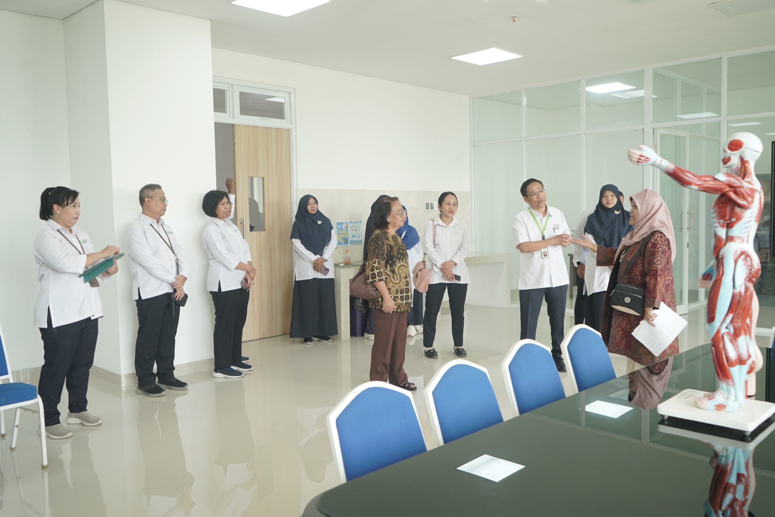 Selanjutnya, tim asesor melakukan peninjauan sarana dan prasarana pendidikan yang meliputi Laboratorium Terpadu Program Studi D-III Keperawatan Mataram, perpustakaan, Laboratorium OSCE, ruang kelas, Laboratorium CBT, serta berbagai fasilitas pendukung lainnya. Asesmen juga mencakup sesi wawancara bersama dosen, tenaga kependidikan, mahasiswa, alumni, serta pengguna lulusan, disertai klarifikasi dokumen dan verifikasi data dukung akreditasi. Selain itu, tim asesor melakukan kunjungan ke wahana praktikum mahasiswa di RSUD Provinsi NTB dan Puskesmas Lingsar.