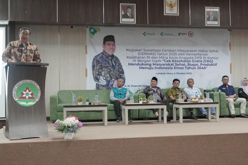 Mataram, 17 Oktober 2025 — Politeknik Kesehatan Kemenkes Mataram berperan aktif dalam kegiatan Sosialisasi Gerakan Masyarakat Hidup Sehat (GERMAS) Tahun 2025 yang diselenggarakan oleh Kementerian Kesehatan RI bersama Mitra Kerja Anggota DPR RI Komisi IX. Kegiatan ini mengusung tema “Cek Kesehatan Gratis (CKG) Mendukung Masyarakat Sehat, Bugar, dan Produktif Menuju Indonesia Emas 2045.”