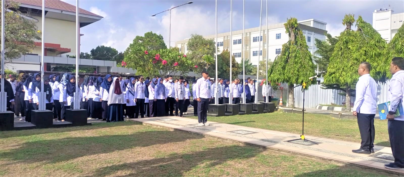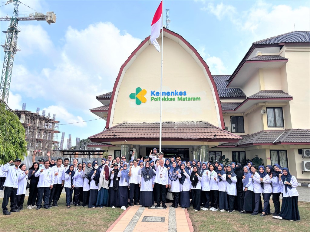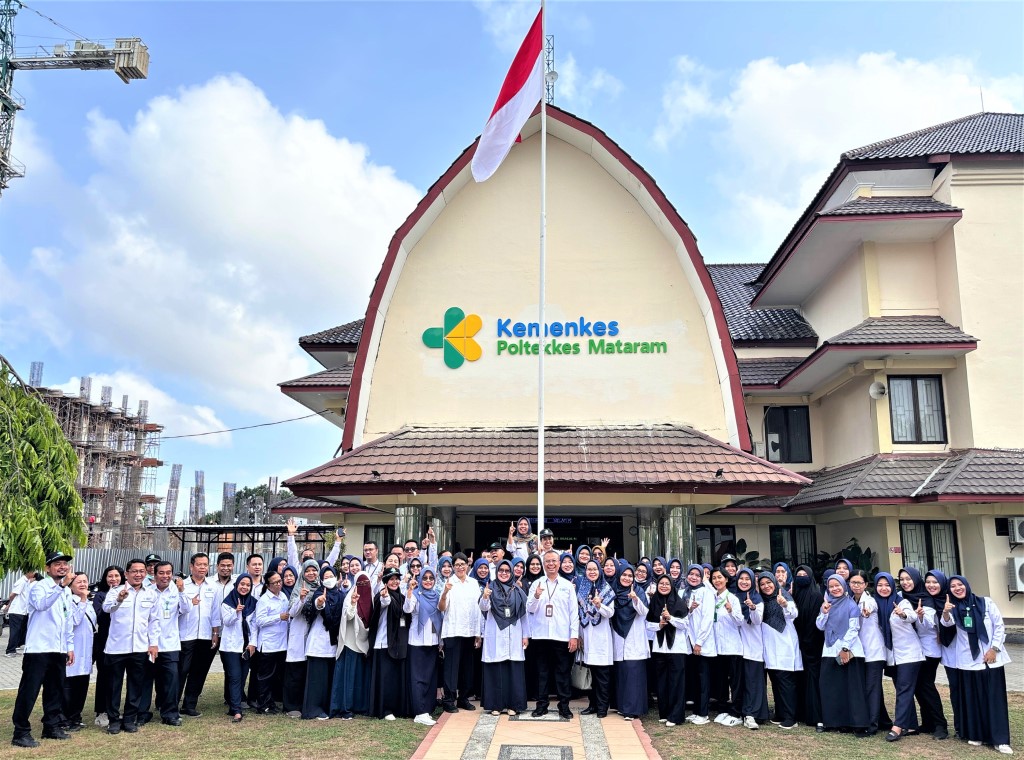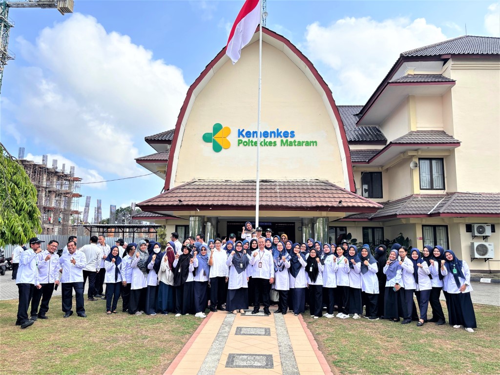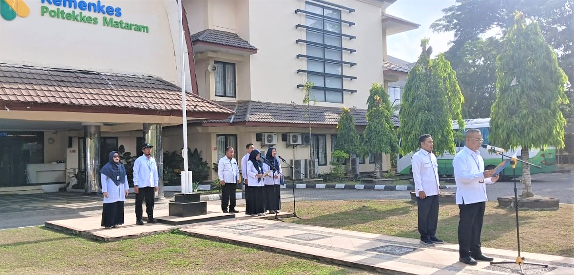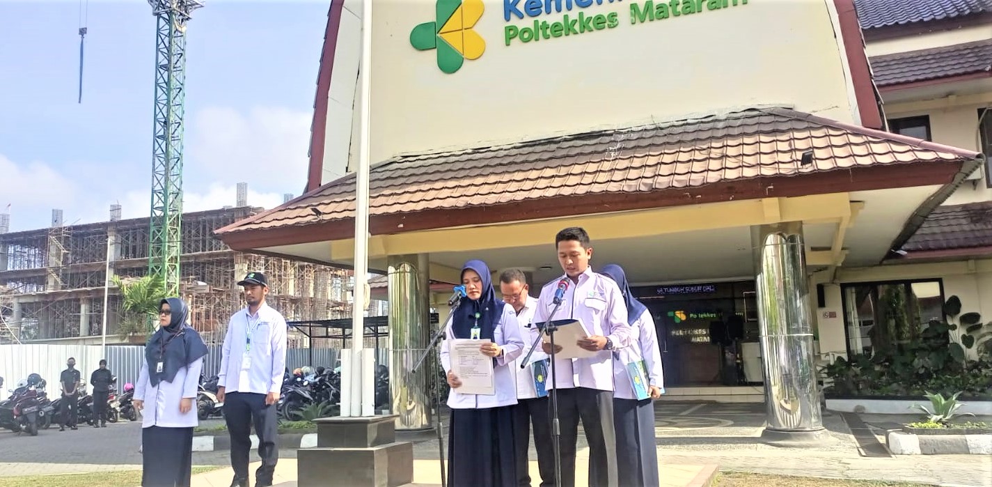 Selasa 1 Oktober 2024, bertempat di halaman Direktorat Poltekkes Kemenkes Mataram telah dilaksanakan Upacara Peringatan Hari Kesaktian Pancasila. Tema Upacara peringatan Peringatan Hari Kesaktian Pancasila tahun 2024 adalah “Bersama Pancasila Kita Wujudkan Indonesia Emas”. Direktur Poltekkes Kemenkes Mataram bapak Dr. dr. Yopi Harwinanda Ardesa, M.Kes menjadi Inspektur Upacara. Seluruh peserta upacara (Dosen dan Tenaga Kependidikan) mengikuti upacara dengan penuh khidmat.