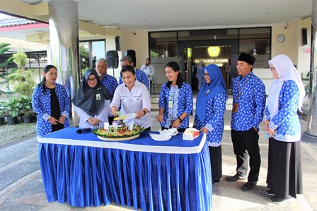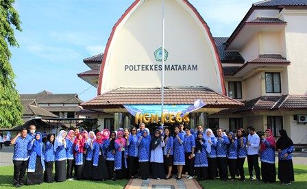 Mataram 25 Januari 2024, Politeknik Kesehatan Kemenkes Mataram selenggarakan upacara peringatan Hari Gizi Nasional yang ke-64 bertempat di halaman gedung Direktorat Poltekkes Kemenkes Mataram dengan pembina upacara Direktur Poltekkes Kemenkes Mataram yang diwakili oleh Wakil Direktur 1 Poltekkes Kemenkes Mataram ibu Ni Putu Karunia Ekayani, M.Keb, dengan dihadiri seluruh civitas akademika Poltekkes Kemenkes Mataram dan juga seluruh undangan mulai dari Ketua DPD Persagi Prov. NTB, Ketua DPC Persagi kota Mataram, Ketua AsDI Prov. NTB, Kasie Gizi Dinas Kesehatan Prov. NTB, Kasie Gizi Dinas Kesehatan kota Mataram, sampai dengan Perwakilan ahli gizi dari 13 Rumah Sakit dan 13 Puskesmas di wilayah kota Mataram.
