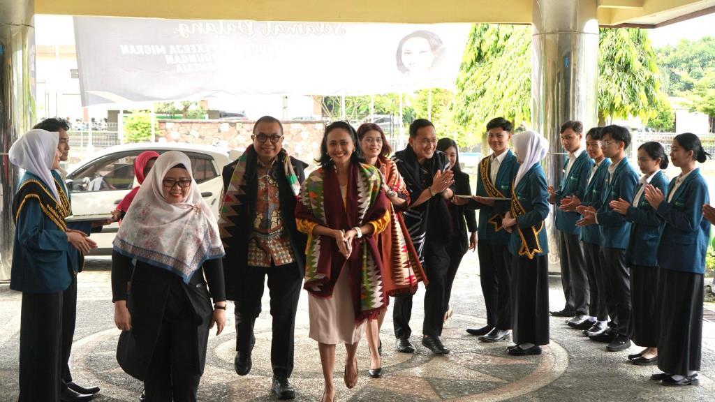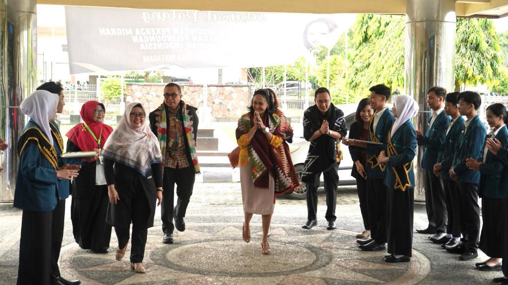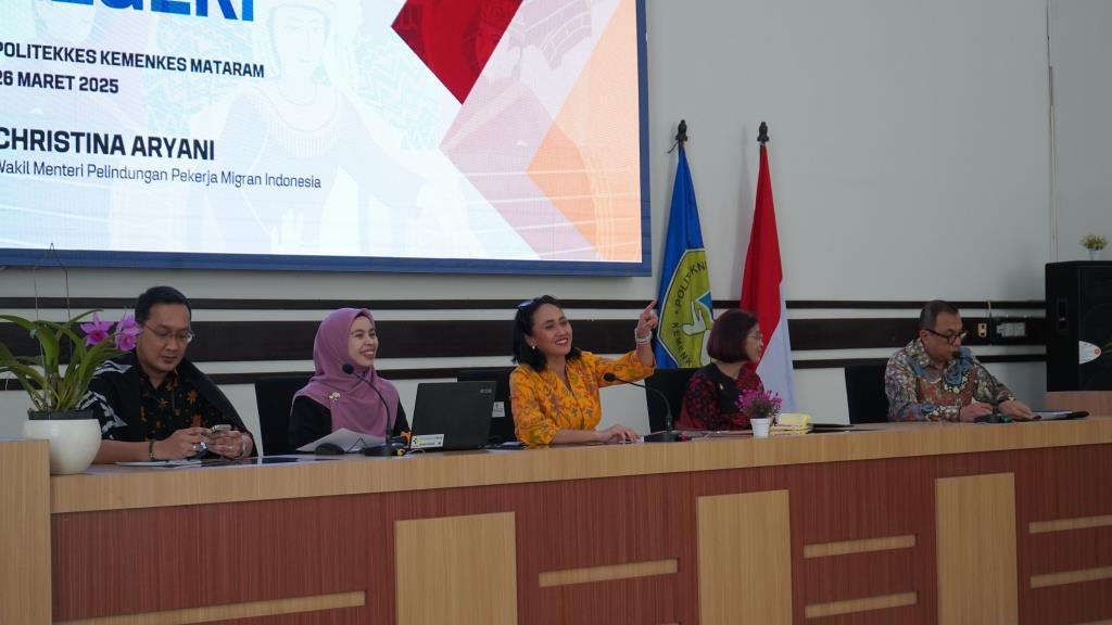 Rabu, 26 Maret 2025, Wakil Direktur Poltekkes Kemenkes Mataram Ibu Ni Putu Karunia Ekayani, S.ST.,M.Kes, Ibu Ridawati Sulaeman, S.Kep, Ns, MM dan Ibu Mas’Adah, S.Kep,Ns, M.Kep beserta seluruh jajaran Poltekkes Kemenkes Mataram menyambut kedatangan Wakil Menteri Perlindungan Pekerja Migran Indonesia (Wamen P2MI), Christina Aryani, SE, SH, MH. Dalam kesempatan ini, Wamen didampingi Abri Danar Prabawa dari Direktorat Pembinaan Kelembagaan Vokasi Kementerian P2MI. Diyah Rejekiningrum dari Direktorat Penempatan Pemerintah Kementerian P2MI. Kepala BP3MI NTB, Noerman Adhiguna dan jajaran untuk memberikan kuliah umum di Poltekkes Kemenkes Mataram, disambut dengan tari kembang sembah oleh UKM Tari yang bertempat di aula lantai 2 Direktorat Poltekkes Kemenkes Mataram.